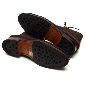 Carmina '80488' Norwegian split toe boots in dark brown 'marron' suede.