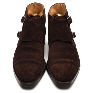 Crockett & Jones 'Camberley' double buckle monk strap boots in dark brown suede. In excellent used condition, showing minor signs of wear.