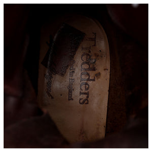 アルフレッド・サージェントがトレダーズ向けに製造した、マホガニーダークブラウンのカーフブーツ。ヒールに若干の摩耗が見られますが、非常に良好な中古状態です。