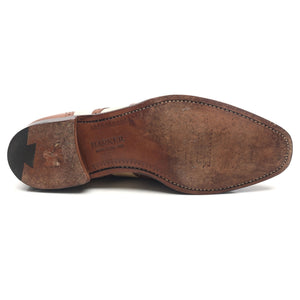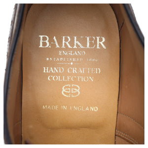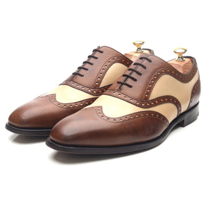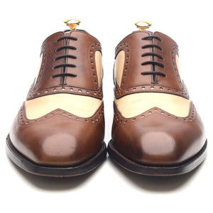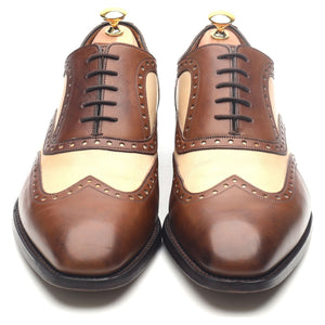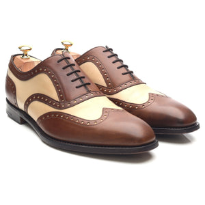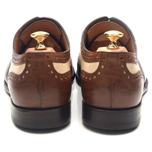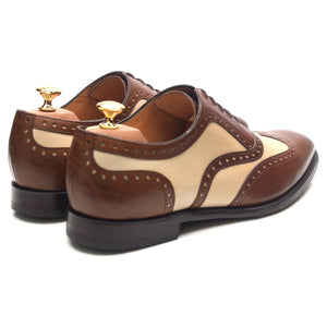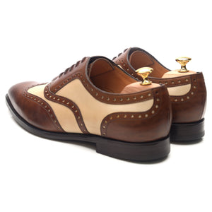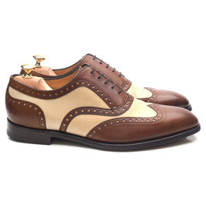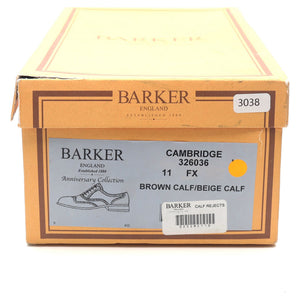 バーカーの「ケンブリッジ」ブローグシューズ(ブラウンとベージュのカーフ)。中古品ながら良好な状態です。なお、こちらは「不完全」と記載されています。