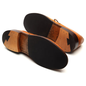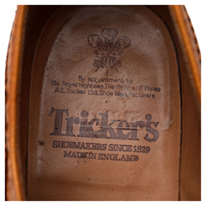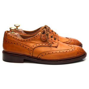Tricker's 'Bourton' derby brogues in tan brown 'Softee' grain calf. In very good used condition, showing moderate signs of wear.