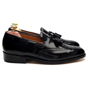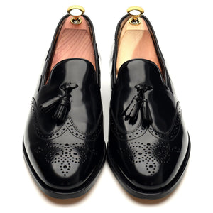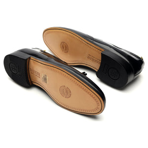 ブラックのポリッシュドカーフを使用した、Barker 'Clive' タッセル ローファー。