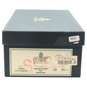 クロケット&ジョーンズ「アレックス」ホールカット・オックスフォード(チェスナット、バーニッシュド・タンブラウンカーフ)。 「サブ」と表記されていますのでご注意ください。