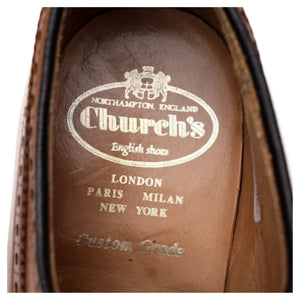 Church's 'Grafton' derby wingtip brogues in tan brown burnished calf. In excellent used condition, showing minor signs of wear.