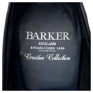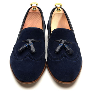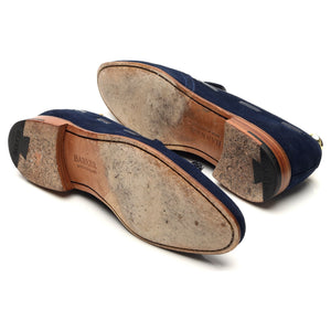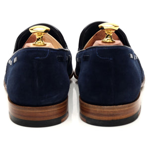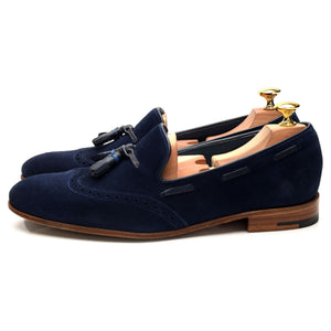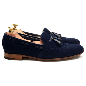 Barker 'Ray' tassel loafers, with broguing, in navy blue suede. In excellent used condition.