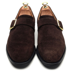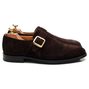 チャーチの「ウェストベリー」モンクストラップ(ダークブラウンスエード)。わずかな使用感はありますが、良好な中古品です。