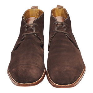 Grenson's 'Smith' unlined chukka boots indark brown suede. In excellent used condition, showing minor signs of wear.