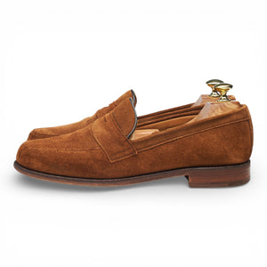 Cheaney 'Henry II' penny loafers in snuff brown suede. In excellent used condition, showing minor signs of wear.