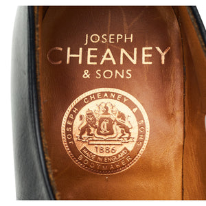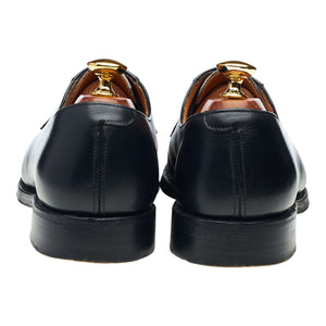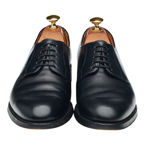 Cheaney women's plain toe derby in black calf. In excellent used condition, showing minor signs of wear.