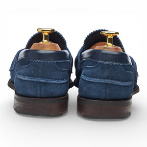 Cheaney 'Prudence' penny loafers in blue suede. In very good used condition, showing moderate signs of wear.