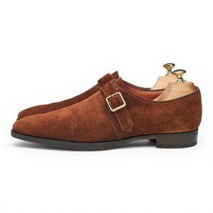 Gaziano & Girling 'Regency' monk strap in snuff brown suede. In excellent used condition, showing minor signs of wear.