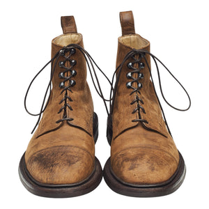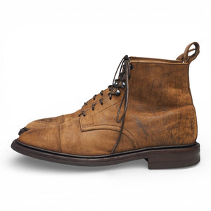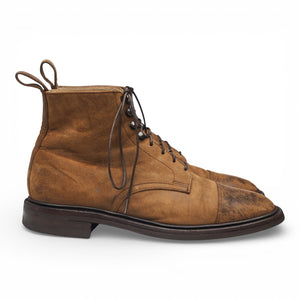 Loake Design 'Shilton' derby boots in brown waxed suede. In excellent used condition, showing minor signs of wear.