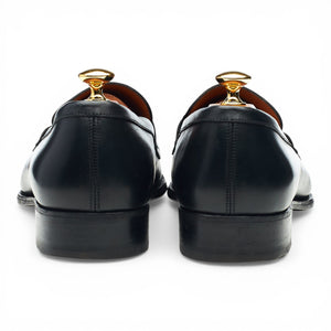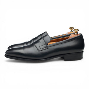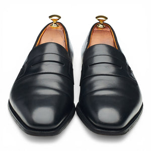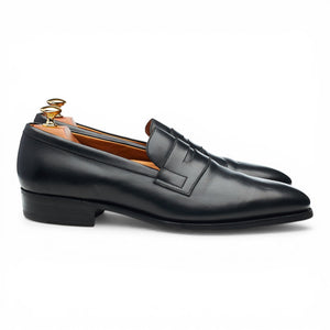 J.M. Weston '472' penny loafers in black calf. In excellent used condition, showing minor signs of wear.