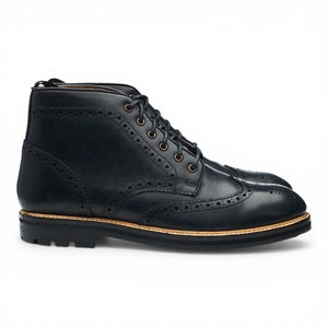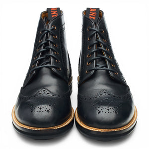 Lanx 'Bayley' brogue derby boots in black calf. In excellent used condition, showing minor signs of wear.