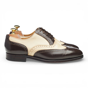 Alfred Sargent 'Melly' oxford spectator brogues in 'Ebony' dark brown and 'Ivory' cream polished calf. In excellent used condition, showing minor signs of wear.