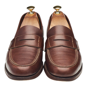 Crockett & Jones manufactured for Ralph Lauren unlined penny loafers in brown calf. In excellent used condition, showing minor signs of wear.