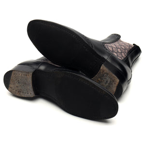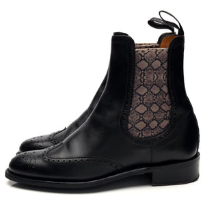 Cheaney 'Ava ll' Chelsea boots in black calf and snake print elastic. In excellent used condition, showing minor signs of wear.