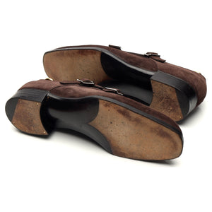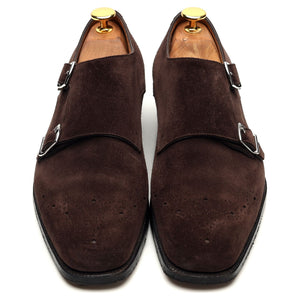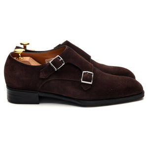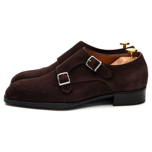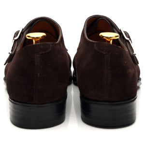 Gaziano & Girling Bespoke double buckle monk strap in brown suede. In excellent used condition, showing minor signs of wear.