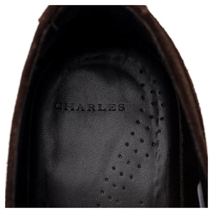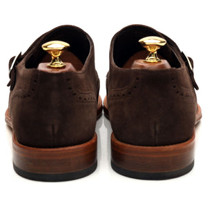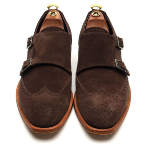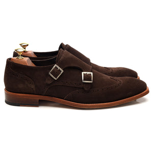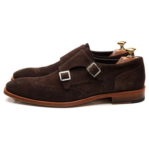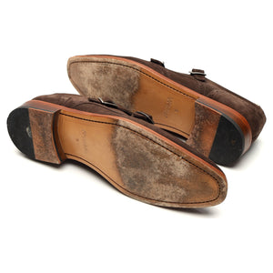 Charles Tyrwhitt double buckle monk strap in dark brown suede. In excellent used condition, showing minor signs of wear.