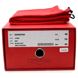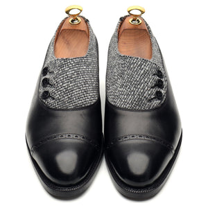 J.FitzPatrick 'Kingston' cap toe button fastened brogue in black calf and grey poulsbo.