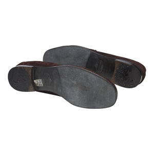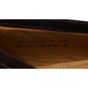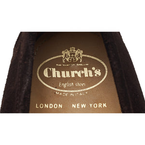 Church's 'Lemar' penny loafers in dark brown suede. In excellent used condition, showing minor signs of wear.