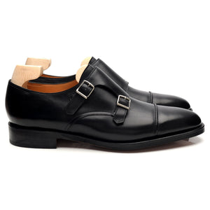 ジョンロブ「ウィリアム」ダブルバックル モンクストラップ、ブラックカーフ。
