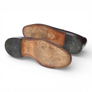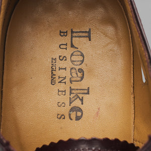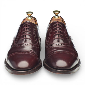 Loake '206' cap toe oxford semi brogues in burgundy polished calf. In excellent used condition, showing minor signs of wear.
