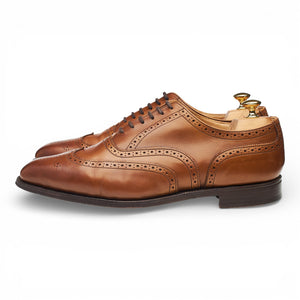 Tricker's 'Piccadilly' oxford wing tip brogues in tan brown calf. In excellent used condition, showing minor signs of wear.
