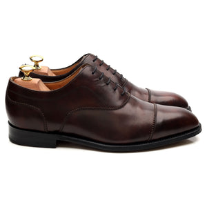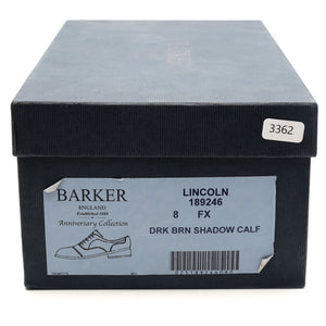 バーカーの「リンカーン」キャップトゥオックスフォード(ダークブラウンカーフ)。非常に良好な中古状態です。