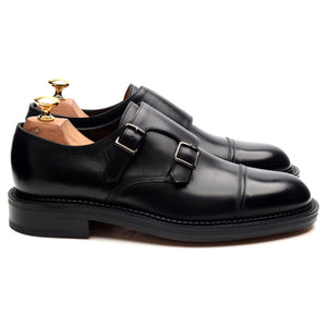 「ウィリアム」ブラックレザーダブルモンクストラップ UK 6.5 E