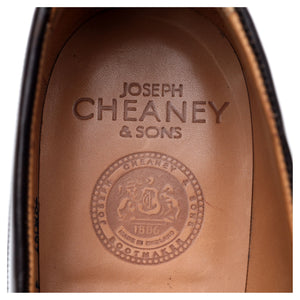 チーニー「ウィルバー」スリッポンローファー。光沢のあるダークブラウンのカーフレザーを使用。状態良好。