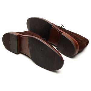 オールデン「1492」、ダークブラウンスエードのアンライニングチャッカブーツ。多少の使用感はあるものの、良好な中古品です。