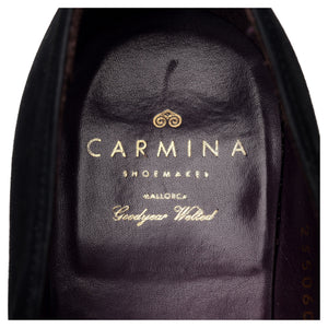 カルミナ「80384」ブラックスエードのプレーントゥローファー。中古品ながら非常に良好な状態です。