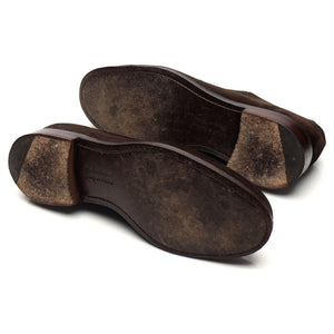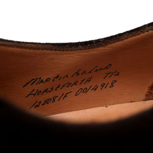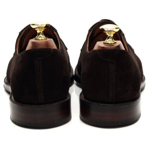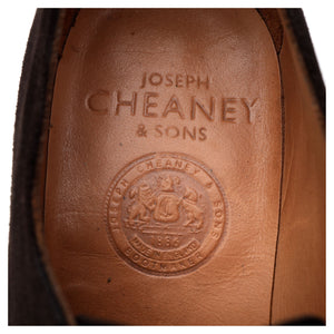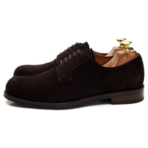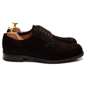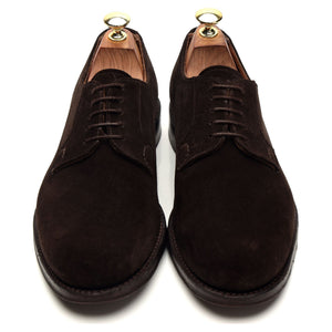 Cheaney 'Horsforth' plain toe derby in dark brown 'bitter chocolate' suede. In excellent used condition, showing minor signs of wear.