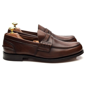 チャーチの「ペンブリー」スプリットトゥ ペニーローファー(ブラウンカーフ)。状態良好。