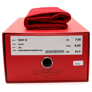 J.フィッツパトリック「トニー II」ホールカットオックスフォード、ダークブラウンのミュージアムカーフを使用。非常に良好な中古状態です。