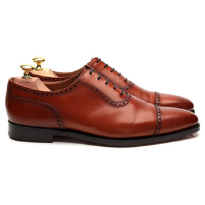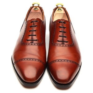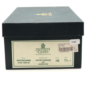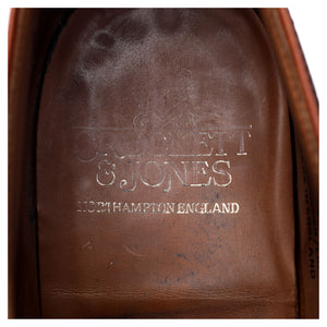 クロケット&ジョーンズ「ウェストボーン」Uスロートオックスフォード。チェスナット、アンティークタンブラウンのカーフレザーを使用。非常に良好な中古品ですが、若干の着用感とつま先部分の擦れが見られます。