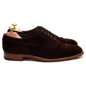 ダークブラウンのスエードを使用したチーニーのキャップトゥオックスフォードシューズ。使用感は若干ありますが、良好なコンディションです。