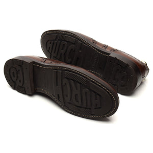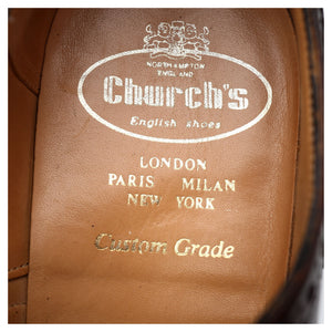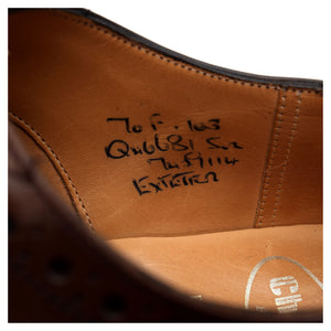 Church's 'Exeter' oxford wingtip brogue in brown calf. In excellent used condition, showing minor signs of wear and light creasing across the vamps.