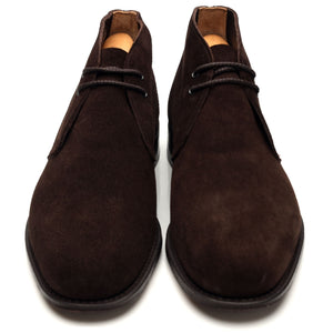 Church's 'Sahara' unlined chukka boot in dark brown suede. In excellent used condition, showing minor signs of wear.