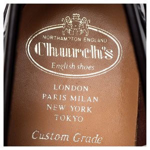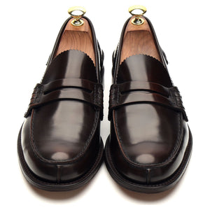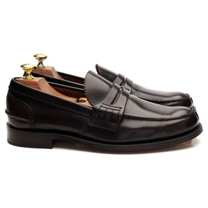 チャーチの「タンブリッジ」裏地なしペニーローファー。ダークブラウンのポリッシュドカーフレザーを使用。非常に良好な中古品です。