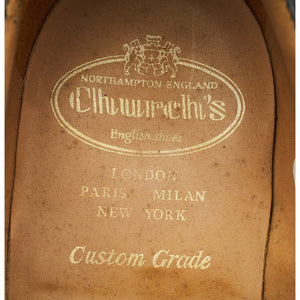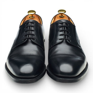 Church's 'Cranfield' plain toe derby in black calf. In excellent used condition, showing minor signs of wear.