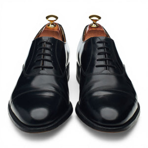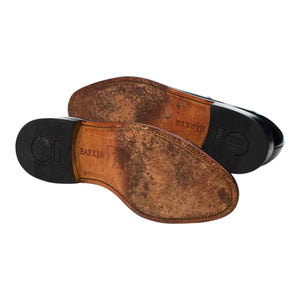 Barker 'Arnold' cap toe oxford in black polished calf. In excellent used condition, showing minor signs of wear.