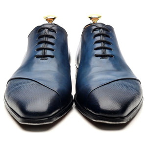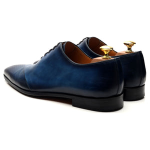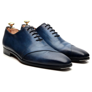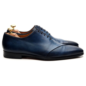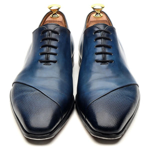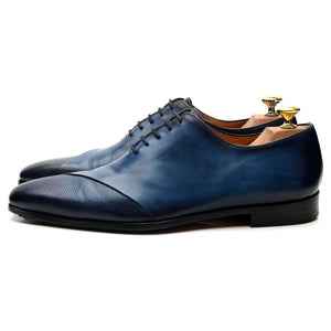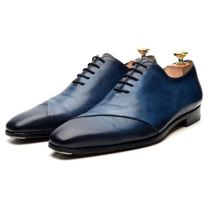 マグナーニのブルーパティーナカーフオックスフォードシューズ。中古品ながら非常に良好なコンディションです。