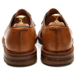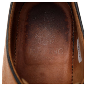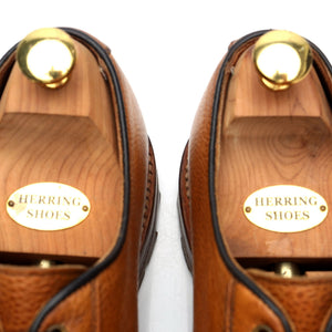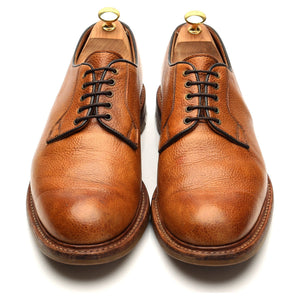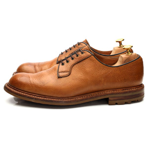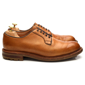 Cheaney manufactured for Herring 'Fursdon' plain toe derby in 'almond' tan brown graincalf. In excellent used condition, showing minor signs of wear and light creasing across the vamps.