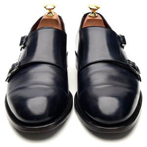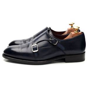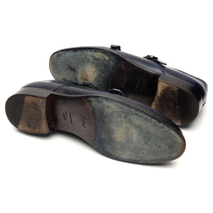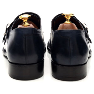 ブリオーニのダブルバックルモンクストラップ(ネイビーブルーカーフ)。使用感はありますが、非常に良好なコンディションです。甲革に若干の使用感と軽いシワが見られます。