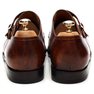 Septième Largeur 'Rennan' double monk strap in tan brown patina calf. In excellent used condition, showing minor signs of wear.