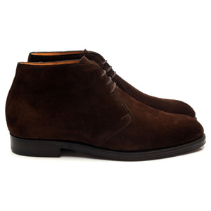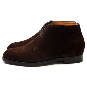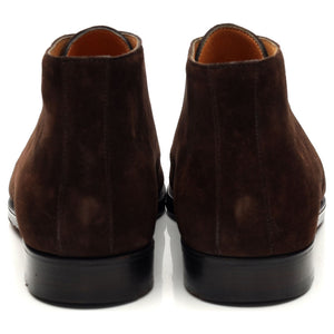 エドワード・グリーンがサー・ウィルソンのために製造したダークブラウンのスエード製チャッカブーツ。わずかな使用感はあるものの、良好な中古状態です。