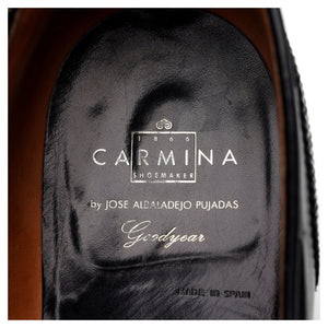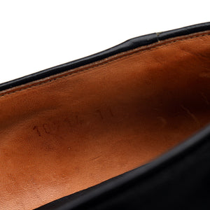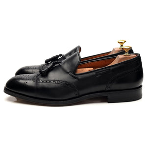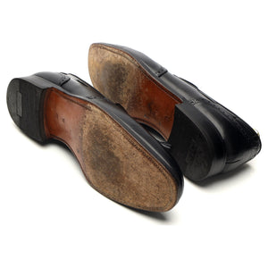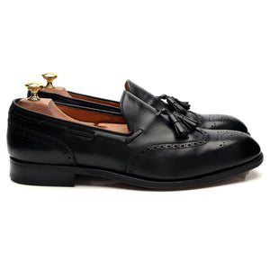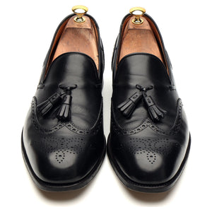 Carmina tassel loafer, with broguing, in back calf. In very good used condition, showing moderate signs of wear and light creasing across the vamps.