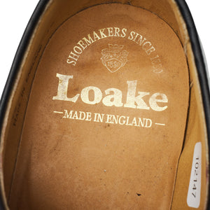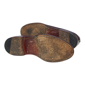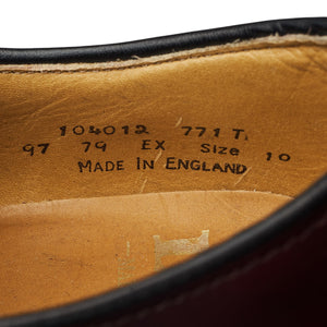 Loake '771' plain toe derby in burgundy polished calf. In excellent used condition, showing minor signs of wear.